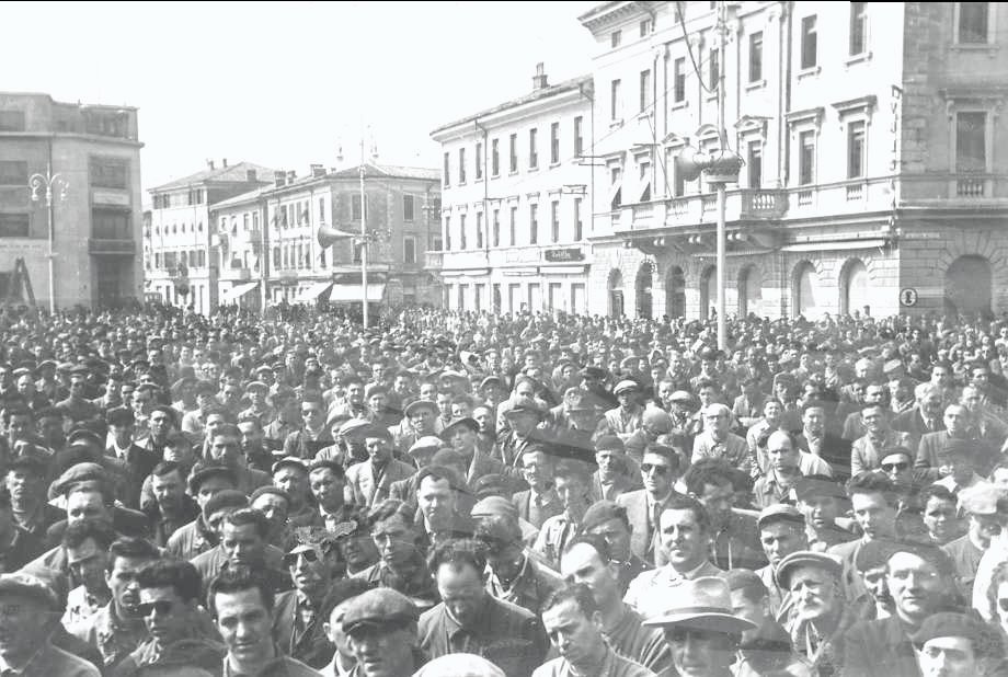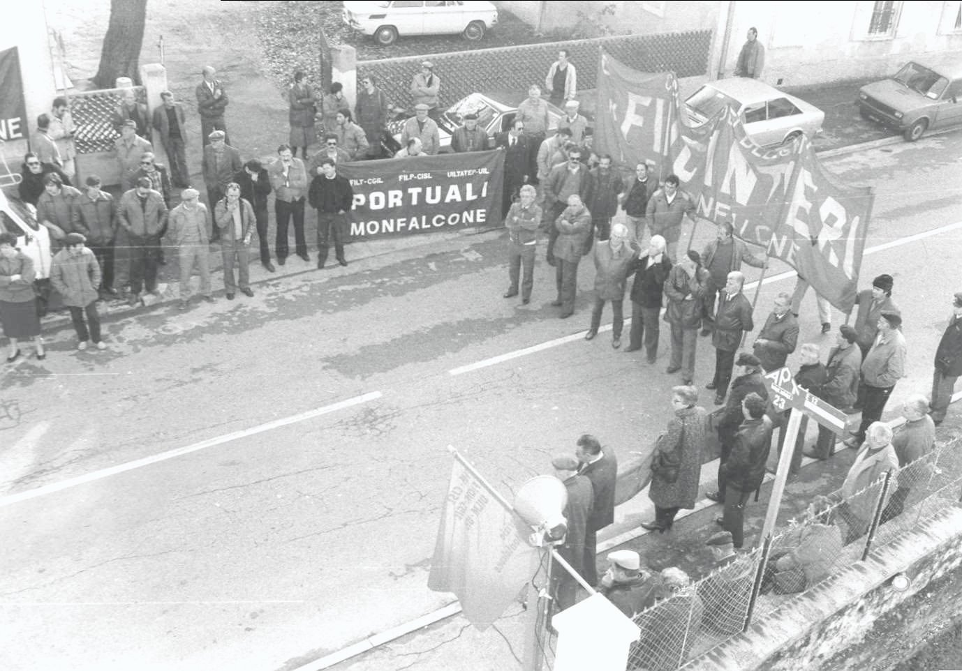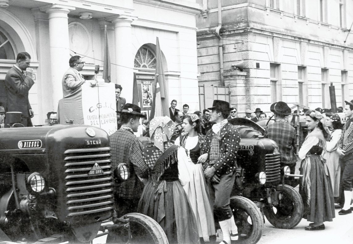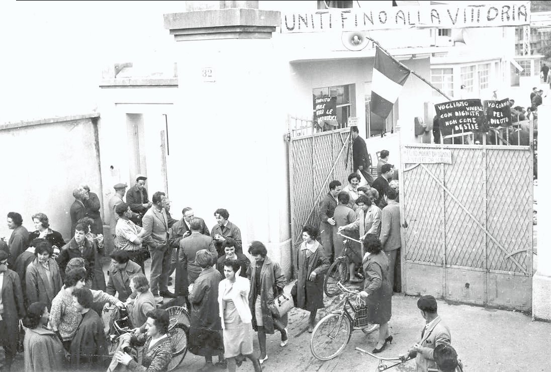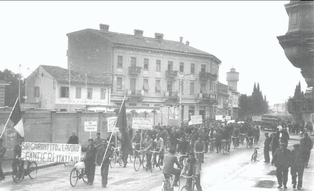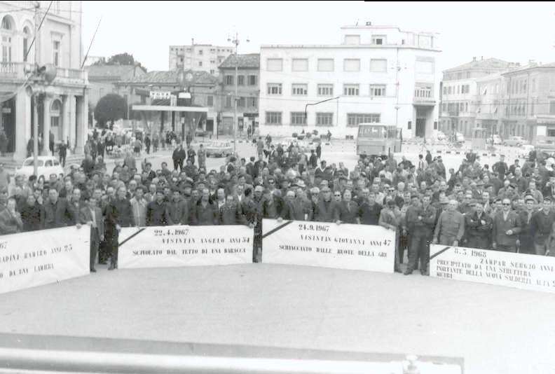 La galleria fotografica tratta dall’Archivio Storico del Lavoro della CGIL di Gorizia-Monfalcone non vuole sicuramente essere esaustiva né della storia delle nostre zone né tantomeno del copioso materiale presente ma, attraverso l’occhio dei fotografi, sicuramente improvvisati di quei anni, vuole rappresentare il “lavoro”; il mirino della macchina guarda al lavoro è rende esplicito il fatto che è collegato ai luoghi in cui viene esercitato, vissuto e dunque la fabbrica ma anche tutto il suo corollario, le sue componenti: gli edifici, lo spazio, le macchine, i volti e i gesti dei lavoratori e delle lavoratrici, i momenti di socialità dentro e fuori gli stabilimenti, gli scioperi, le biciclette… è così che nelle immagini lo sguardo scorge elementi e dettagli che ricollegano alla raffigurazione della nostra memoria, che le rende familiari e parlano di storie di vita.