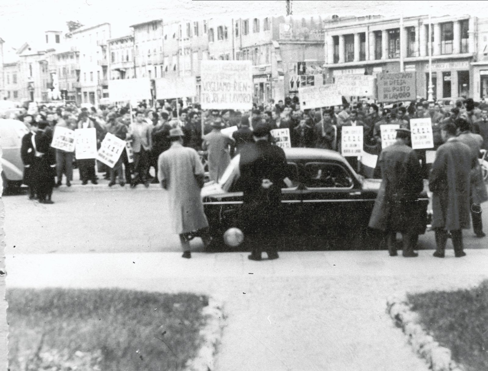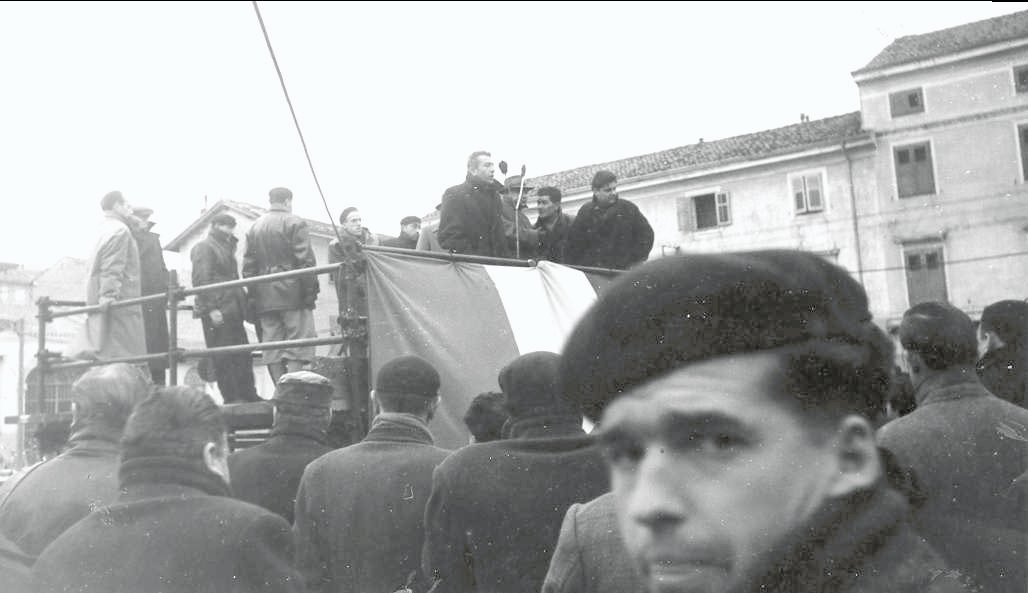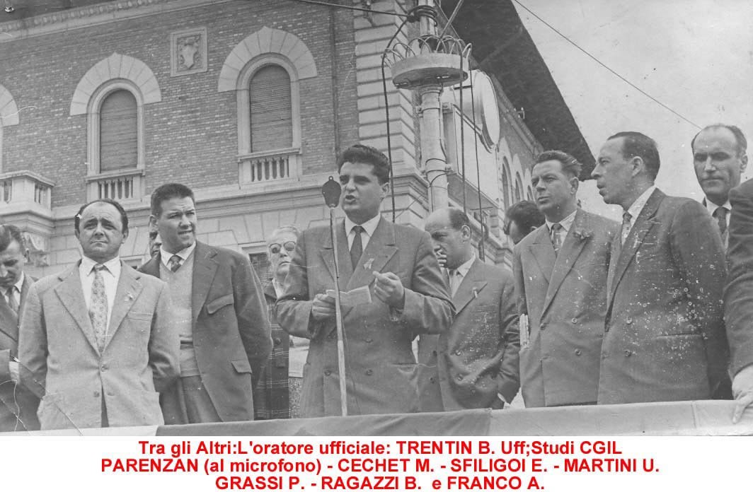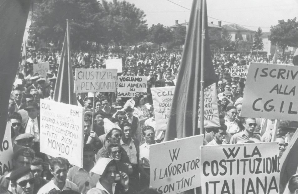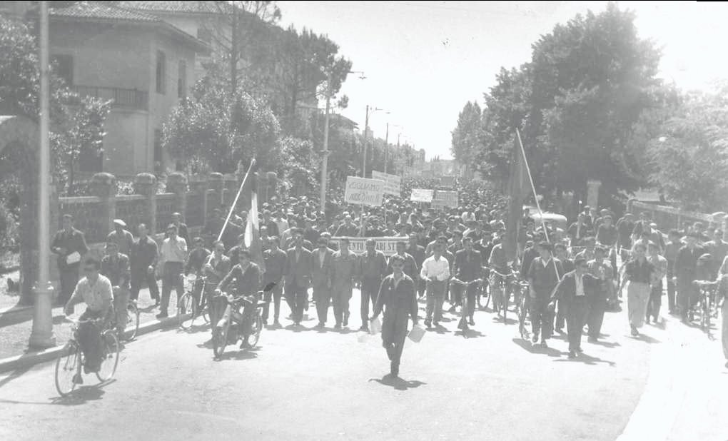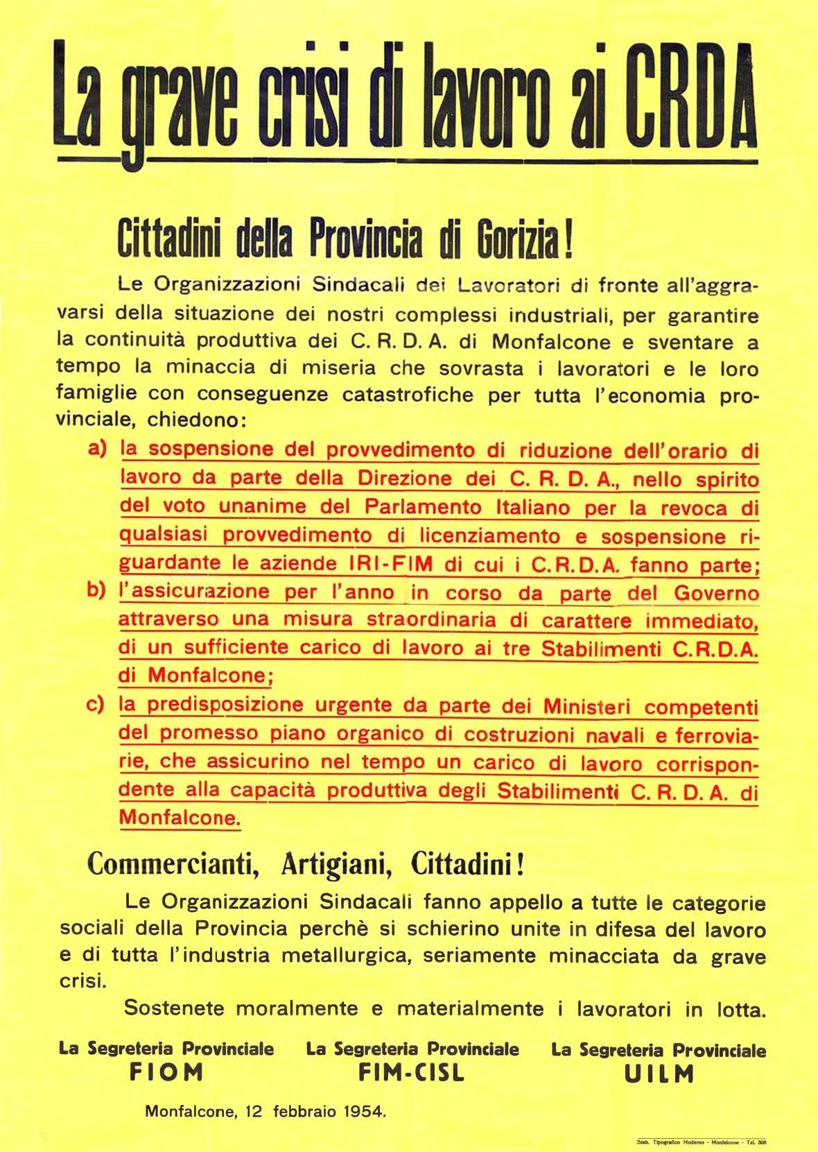 La galleria fotografica tratta dall’Archivio Storico del Lavoro della CGIL di Gorizia-Monfalcone non vuole sicuramente essere esaustiva né della storia delle nostre zone né tantomeno del copioso materiale presente ma, attraverso l’occhio dei fotografi, sicuramente improvvisati di quei anni, vuole rappresentare il “lavoro”; il mirino della macchina guarda al lavoro è rende esplicito il fatto che è collegato ai luoghi in cui viene esercitato, vissuto e dunque la fabbrica ma anche tutto il suo corollario, le sue componenti: gli edifici, lo spazio, le macchine, i volti e i gesti dei lavoratori e delle lavoratrici, i momenti di socialità dentro e fuori gli stabilimenti, gli scioperi, le biciclette… è così che nelle immagini lo sguardo scorge elementi e dettagli che ricollegano alla raffigurazione della nostra memoria, che le rende familiari e parlano di storie di vita.