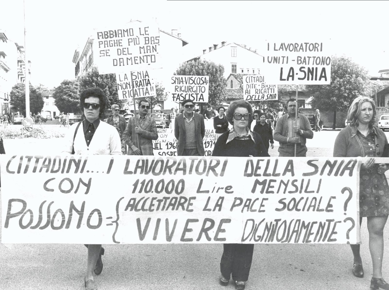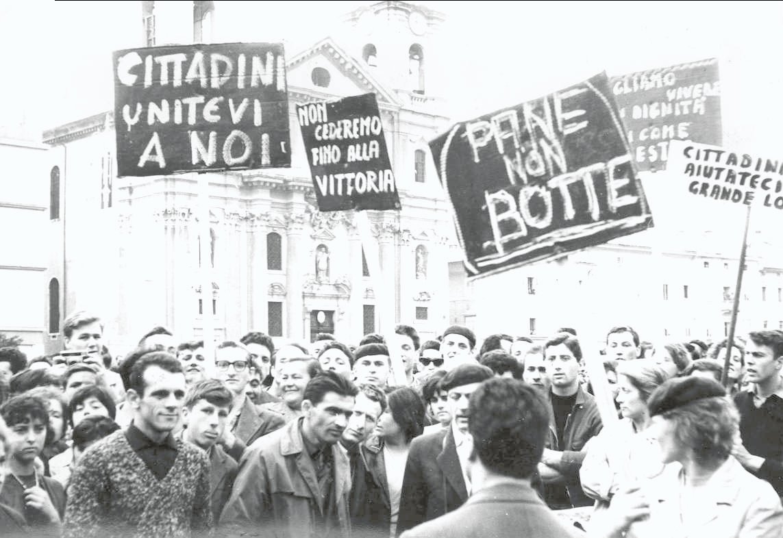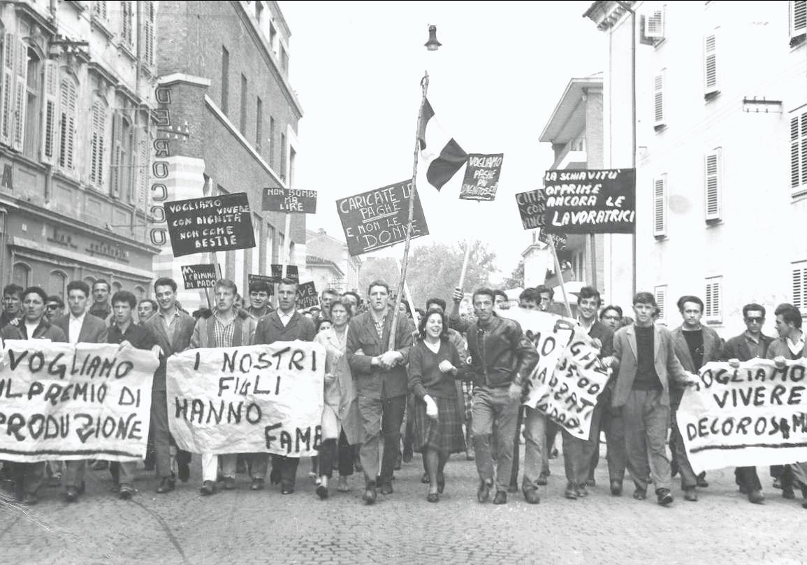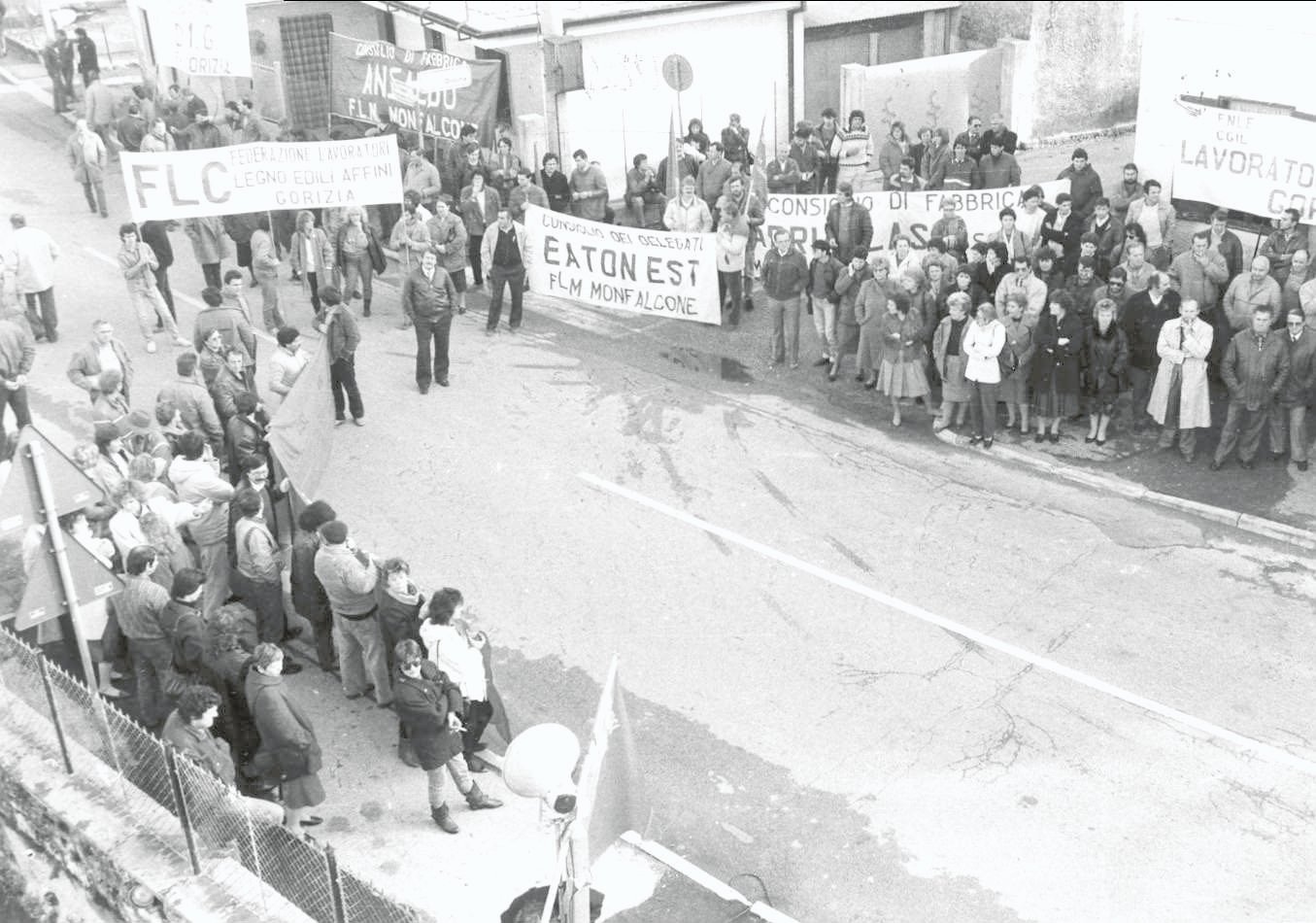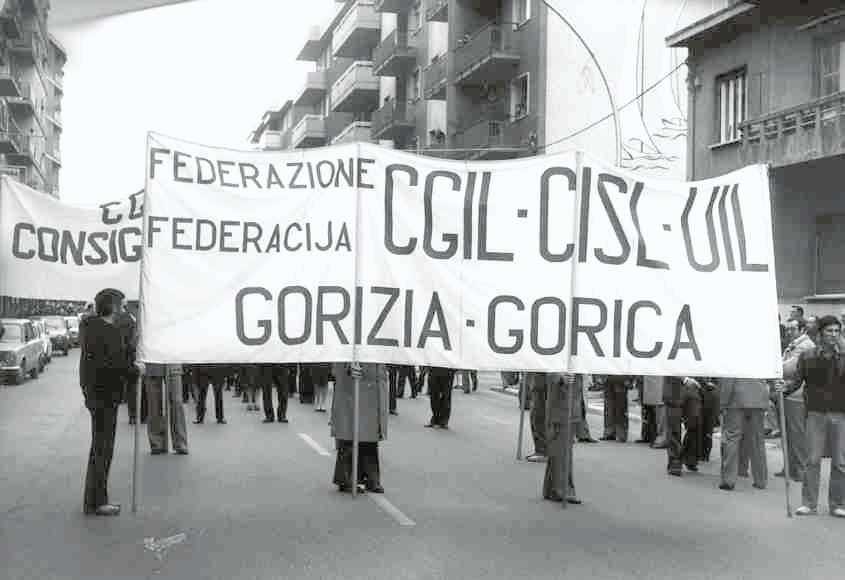 Questa galleria fotografica prende in considerazione soprattutto le lotte delle lavoratrici e dei lavoratori tessili per salvare i posti di lavoro nei cotonifici goriziani.